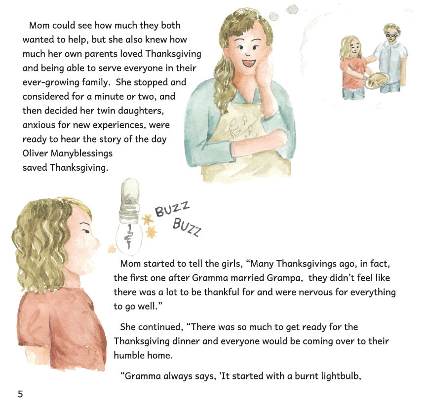 A story about the true meaning of Thanksgiving. When Gramma and Grampa were young, their first Thanksgiving was full of all kinds of challenges. Through their focus on the positive and good, they received unexpected help from Oliver Manyblessings. A classic story about counting your blessings and the great things that can happen in doing so.